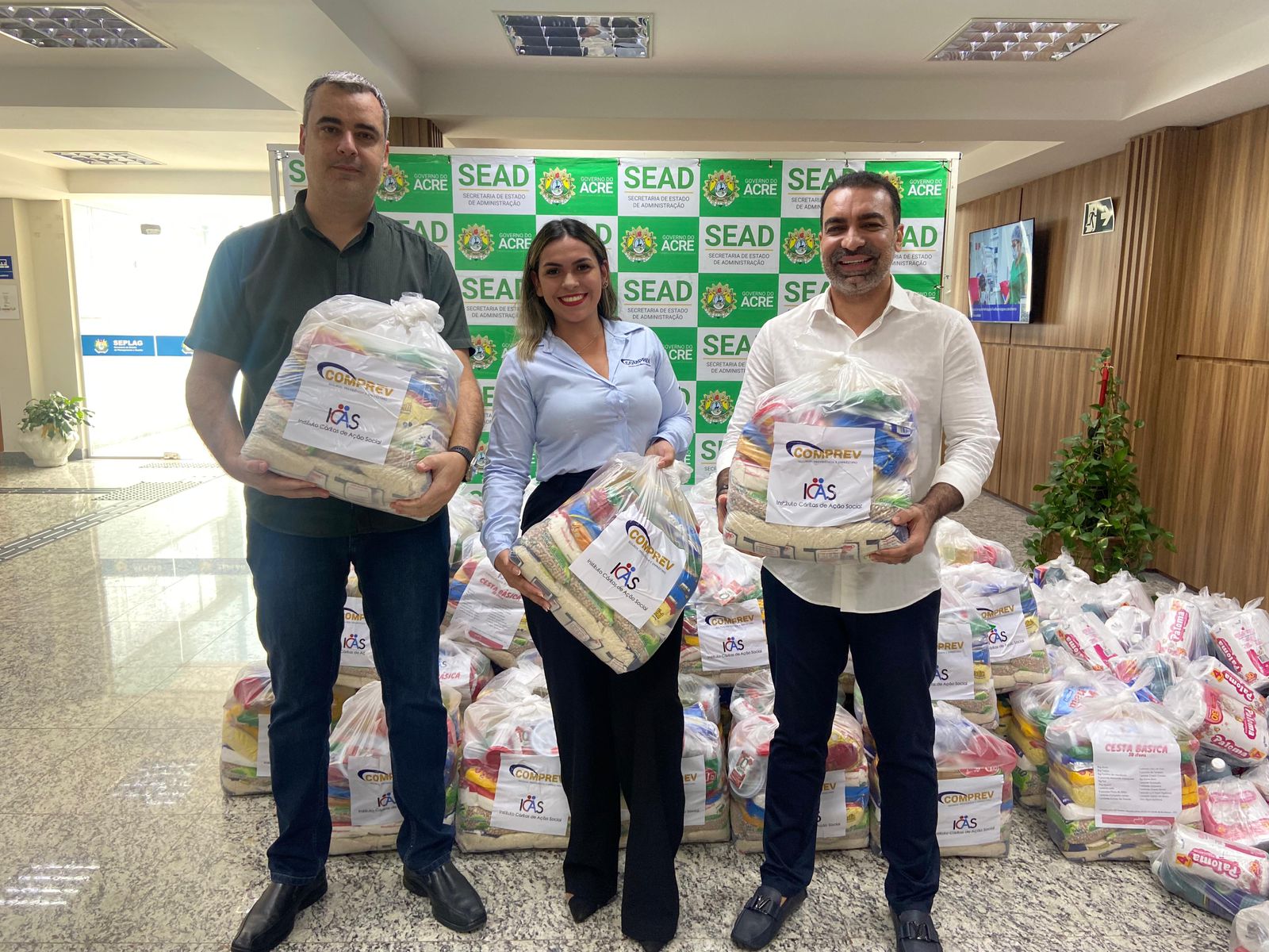 Mais uma vez, as fortes chuvas afetaram o estado do Acre. E nós da COMPREV, que estamos presentes na cidade de Rio Branco há mais de 9 anos, não poderíamos deixar de ajudar e repetir a mesma ação social realizada em abril do ano passado. No dia 01 de abril de 2024, a equipe da Agência Rio Branco/AC, com apoio do ICAS (Instituto Cárias de Ação Social) junto com a COMPREV, realizou uma AÇÃO SOCIAL doando cestas básicas para os servidores da Secretaria de Estado de Saúde do Acre (SESACRE) e Secretaria de Estado de Administração (SEAD), vítimas das enchentes na cidade de Rio Branco que, deixando milhares de famílias desabrigadas. Foram adquiridas e distribuídas 100 (cem) cestas básicas (com 30 itens cada), pesando 20kg, equivalente a 2 (duas) toneladas de alimentos, produtos de higiene e limpeza). A COMPREV sente um enorme prazer em ajudar as famílias neste momento tão delicado. Desejamos muita prosperidade ao povo do Acre e que todos possam se reerguer com muita força e apoio.
